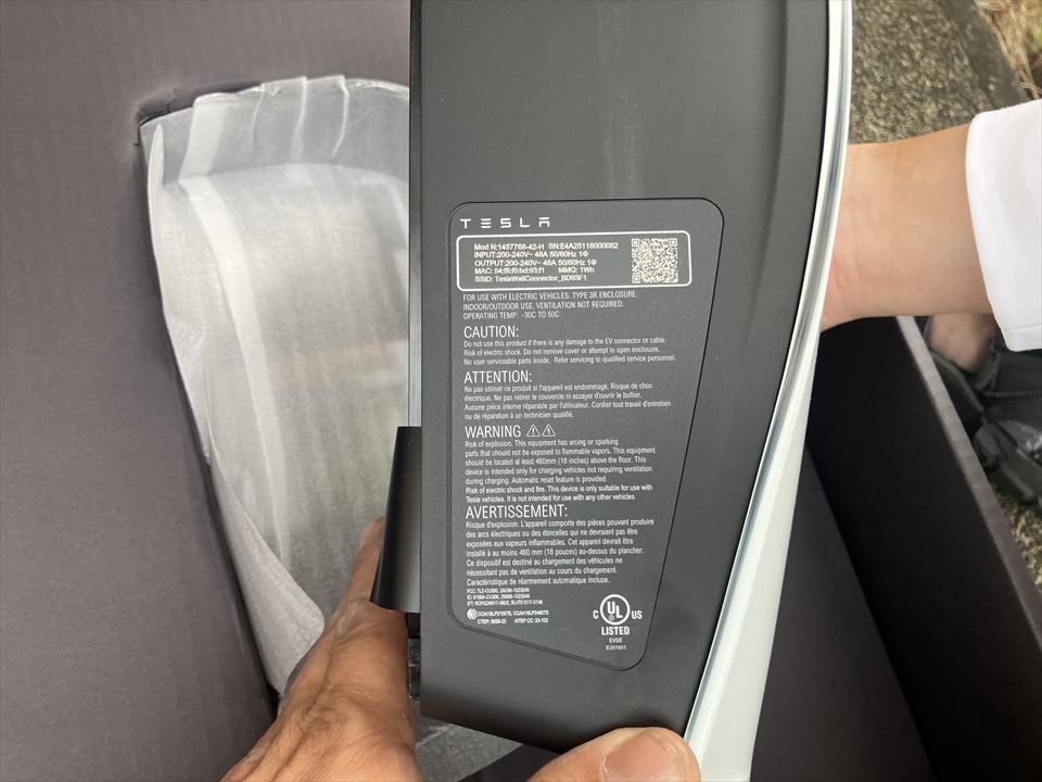 電気自動車(EV)用の高速充電器「テスラ ウォールコネクター」の