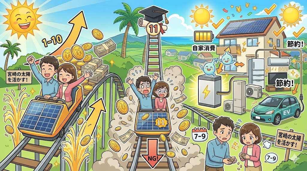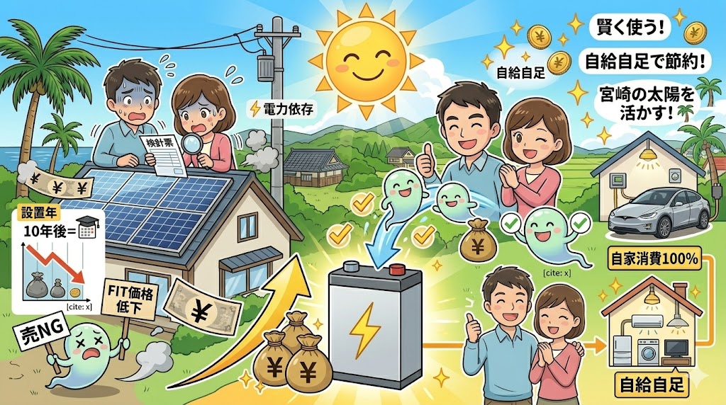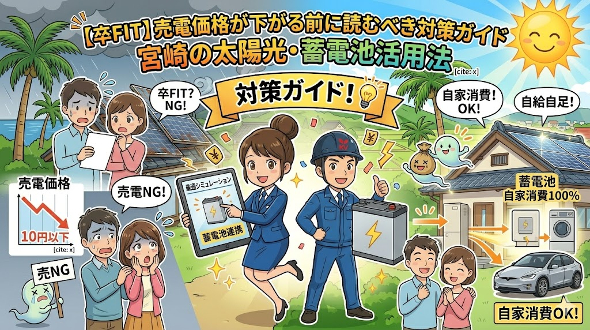 【卒FIT】売電価格が下がる前に読むべき対策ガイド|宮崎の太陽光・蓄電池活用法