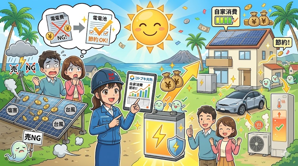 卒FIT対策は全国一律の話ではありません。宮崎では日照条件、オール電化住宅の多さ、台風リスクといった地域要因が判断に強く影響します。全国平均の情報だけで判断すると、宮崎の住宅では本来得られるメリットを取りこぼす可能性があります。