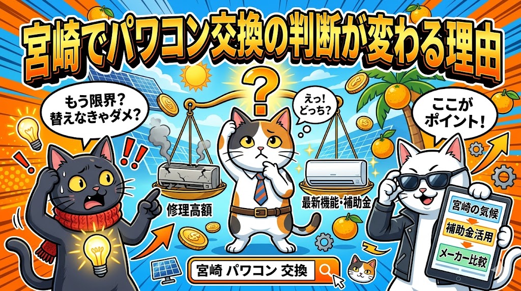 パワコン交換は、全国どこでも同じ感覚で判断していいわけではありません。宮崎では、日射を活かしやすい一方で、海沿いの塩害や暑さ、県内広域対応のしやすさなど、地域ならではの条件が判断に影響します。