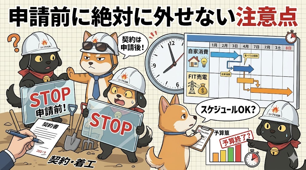 それは「先に契約してしまうこと」と「制度の考え方を売電目線だけで見てしまうこと」です。ここは本当に重要なので、はっきり押さえておきましょう。